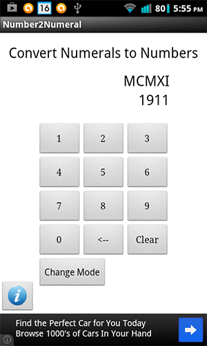 Ever wondered what those Roman numerals on the front of that old building say? With this app you can quickly and easily convert those numerals into numbers.